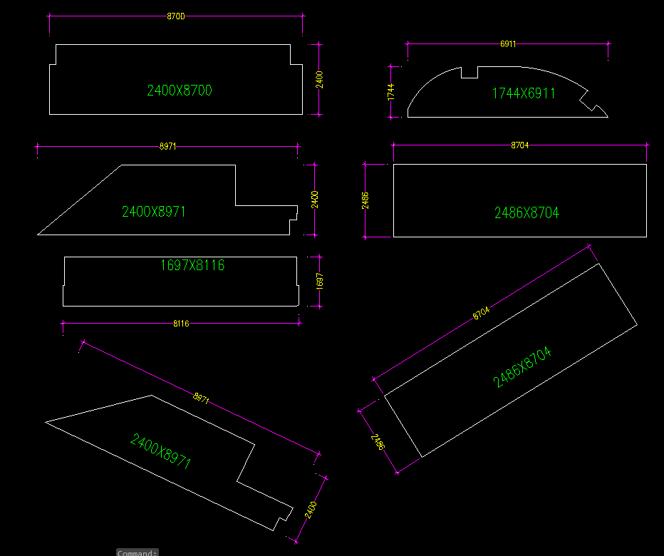 Có các đa giác là pline kín. E muốn ghi được text kích thước như trong ảnh thì có cách nào ko ạ, kích thước là chiều dài dim đoạn thằng lớn nhất của đa giác