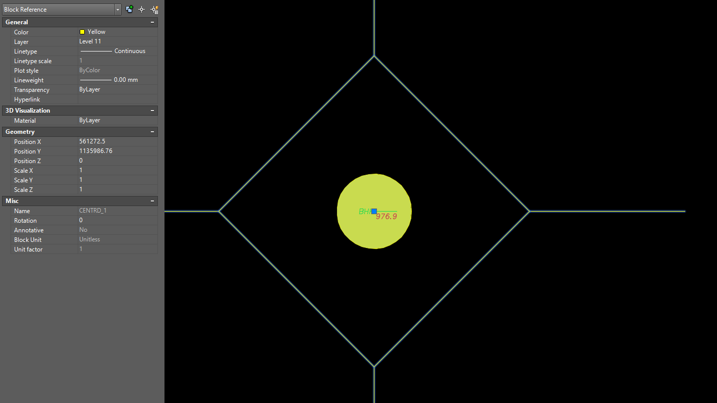 Em xin chào các anh, hiện tại em có file địa chính có block thông tin thửa bao gồm: số thửa, quy hoạch, diện tích, line .... giờ em muốn scale block này làm sao để nó có thể nằm lọt trong thửa với tâm của nó đặt tại đầu line màu xanh ngay điểm block màu vàng, mong muốn của em là có được lisp scale hoàn loạt đối tượng để block thông tin lọt vào trong thửa để lấy dữ liệu. Mong các anh giúp